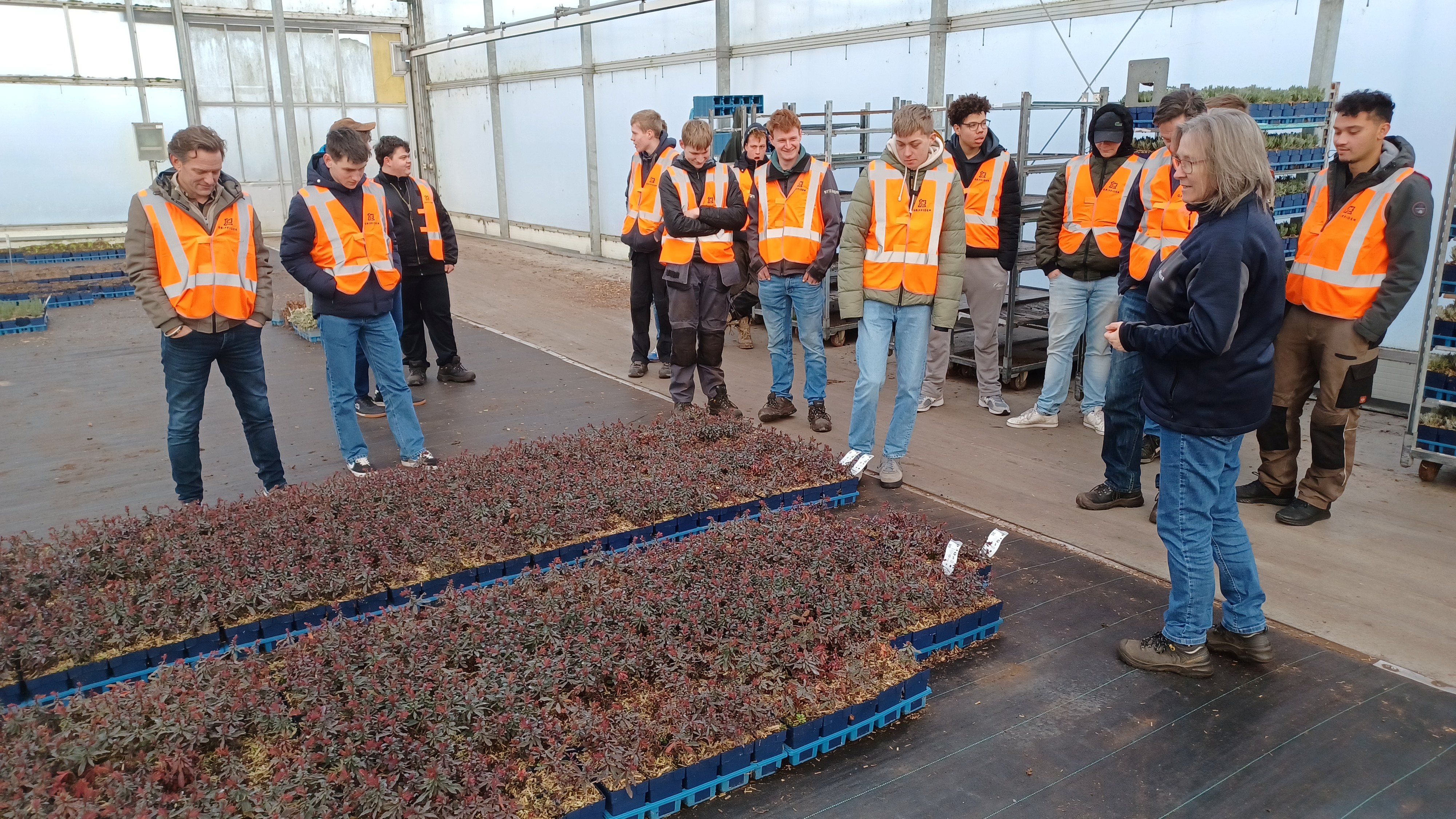 In februari staat het thema Bemesting op de agenda. Voordat we op donderdag 5 februari met dit thema aan de slag gingen, zijn de BBL-studenten op woensdag 4 februari naar de beurs Plantarium|GROEN-Direkt geweest. Hier is de plantenkennis opgefrist, aan de hand van opdrachten. De dag erna waren we te gast bij Griffioen Wassenaar. De vakspecialist Joris van Tol heeft hier, voor de studenten van de BBL én de cursisten van Brancheopleiding Boomteelt, een programma verzorgd rondom voeding en verschijnselen van gebrek bij planten. Daarnaast had hij Bas Nieuwesteeg (DCM) uitgenodigd voor een inleiding over de organische meststoffen. Na het theoretische gedeelte is er bij Tuinen van Boskoop een grondmonster volle grond gestoken en tenslotte een bezoek gebracht aan de bedrijfslocatie Randenburgseweg in Reeuwijk. Hier is men bezig met een transitie naar het volledig biologisch kweken van vaste planten.